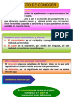 Partiremos de que Conocer es aprehender o captar con la inteligencia los entes y así