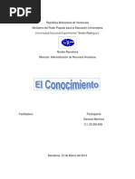 El Conocimiento es el acumulo de información, adquirido de forma científica o empírica.
