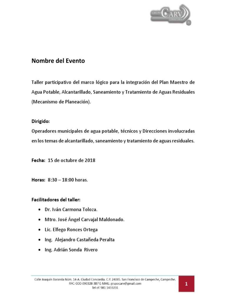 Taller participativo del marco lógico para la integración del Plan Maestro de