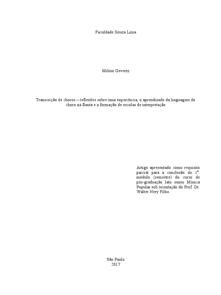Transcrição de choros – reflexões sobre uma experiência, o aprendizado da linguagem