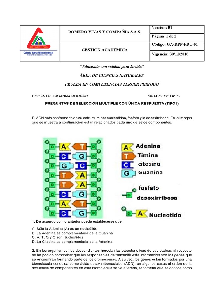 biomolécula conocida como ácido desoxirribonucleico (ADN); en algunos casos el orden de la