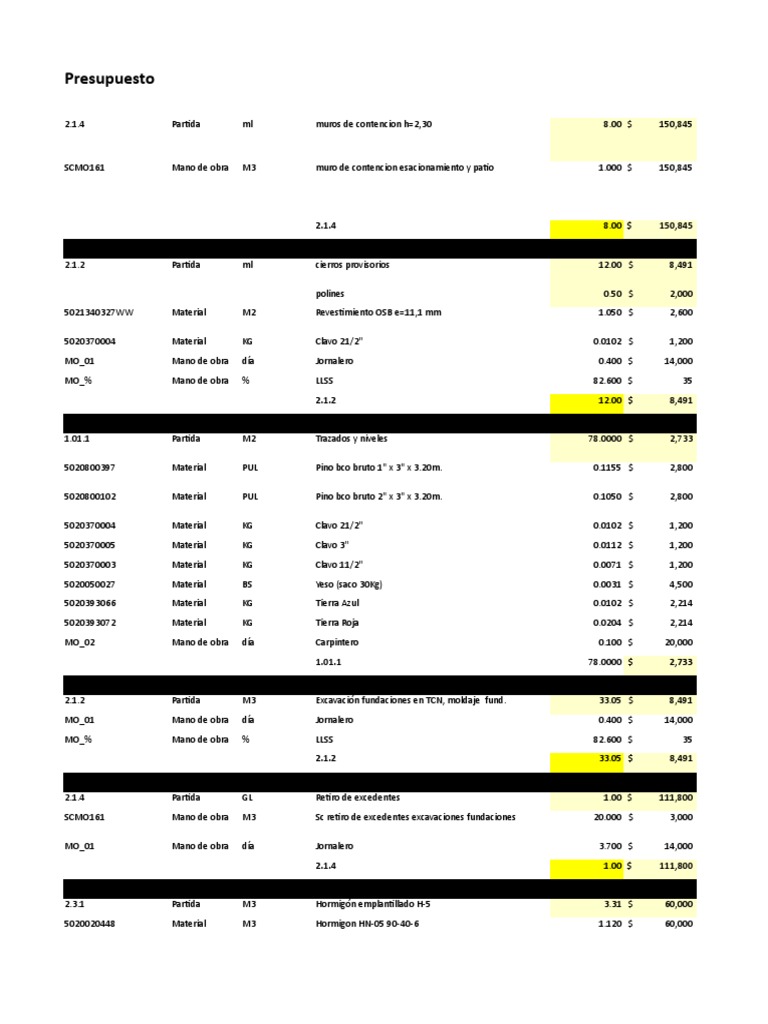 2.1.4 Partida ml muros de contencion h=2,30 8.00 $ 150,845