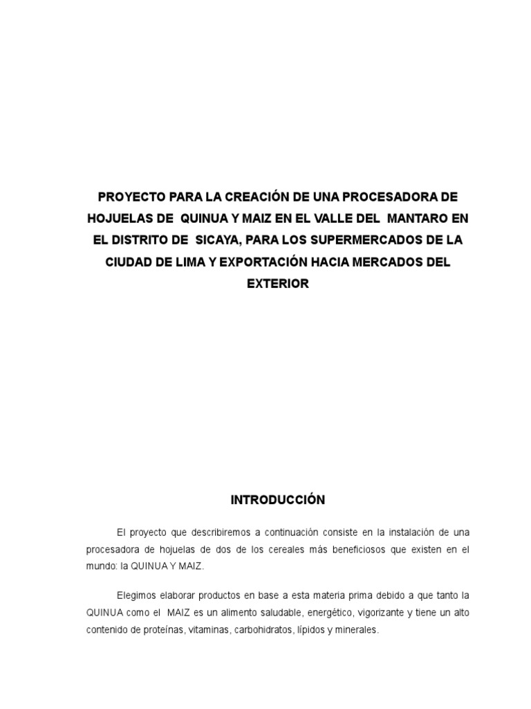 Para nuestro proyecto, el producto elegido es: Hojuelas de QUINUA y MAIZ. Este