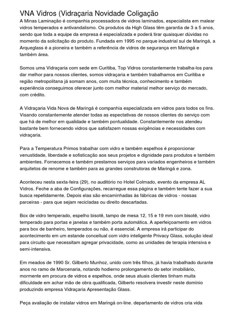 A Vidraçaria Vida Nova de Maringá é companhia especializada em vidros para todos os fins.