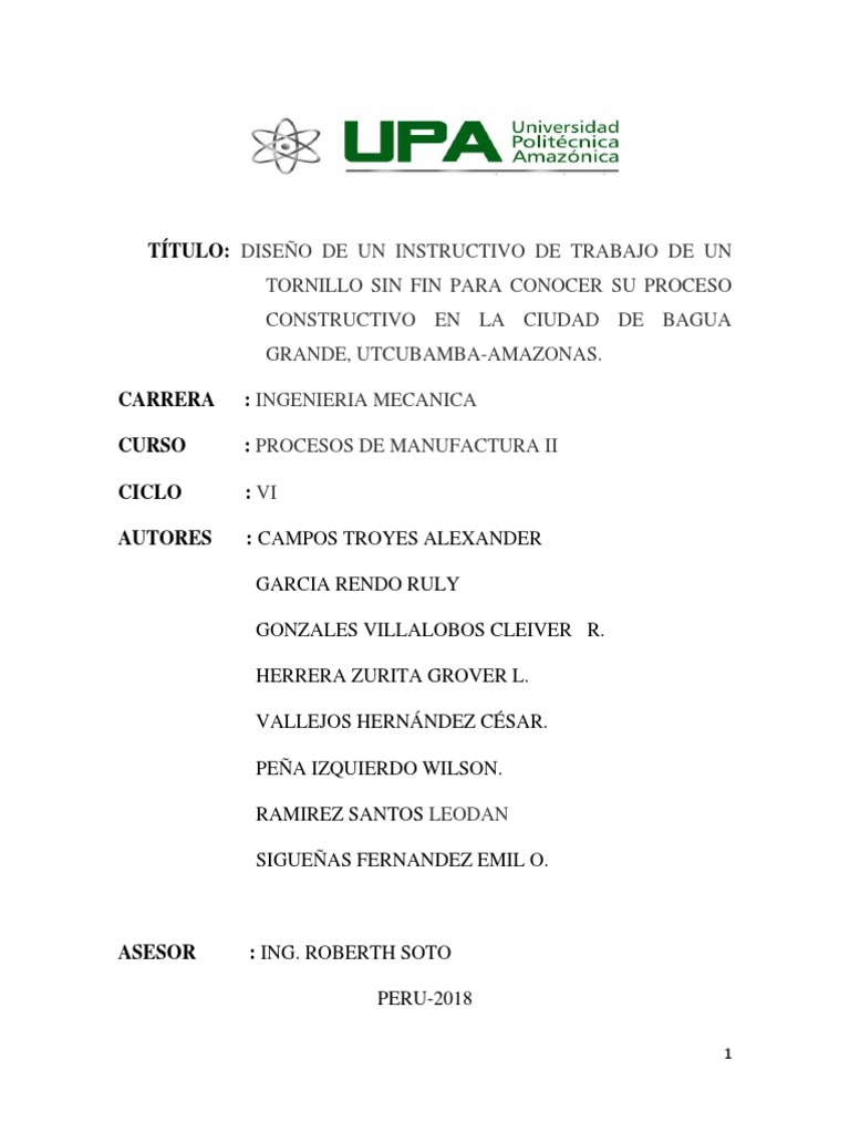Diseñar de un instructivo de trabajo de un tornillo sin fin para conocer su