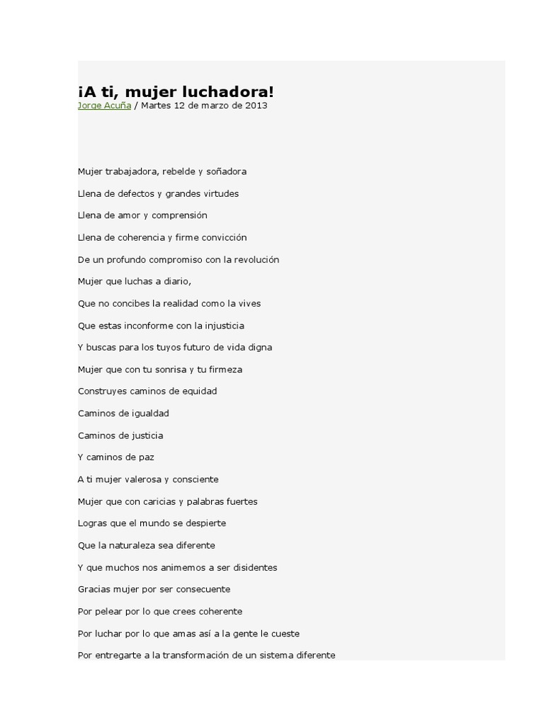 A ti mujer valerosa y consciente