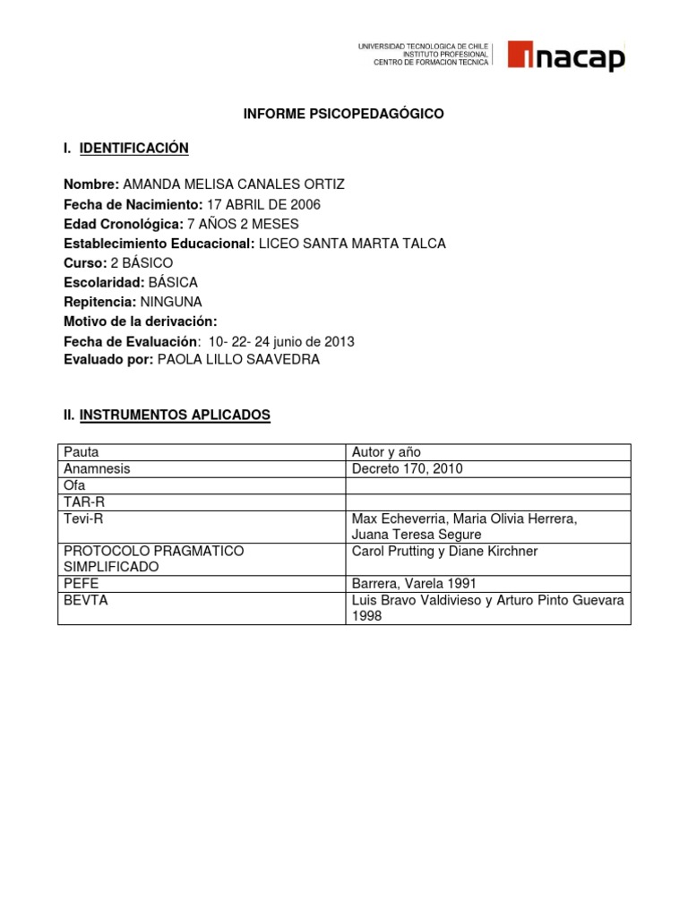 INFORME PSICOPEDAGÓGICO