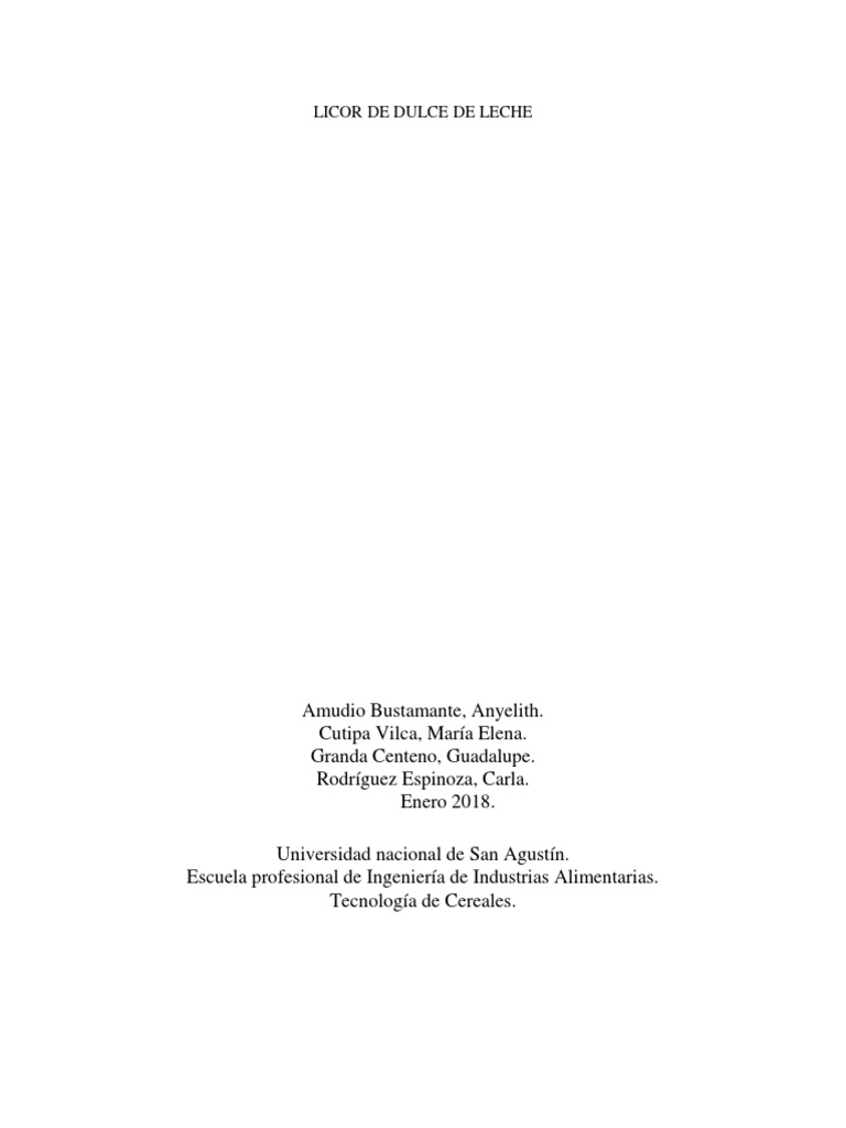 Conocer el proceso de elaboración de un licor de dulce de leche, desde la materia prima