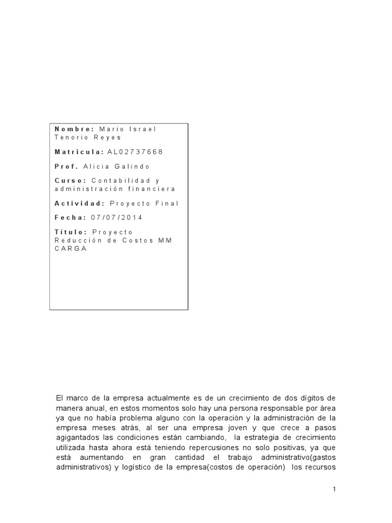 Prof. Alicia Galindo CARGA la cual tiene problemas con los costos