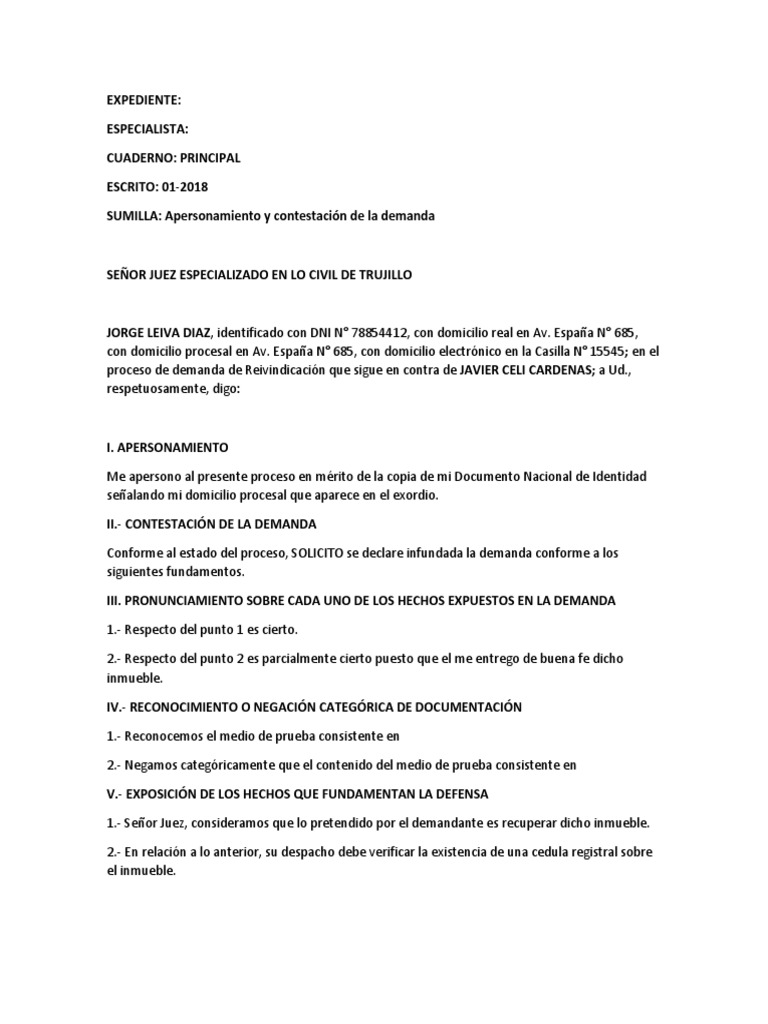 Me apersono al presente proceso en mérito de la copia de mi Documento Nacional de Identidad
