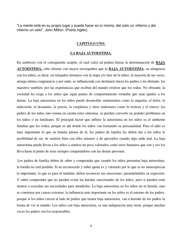 forma de ver al mundo. Los niños con baja autoestima, es una indignación muy triste, porque muchas
