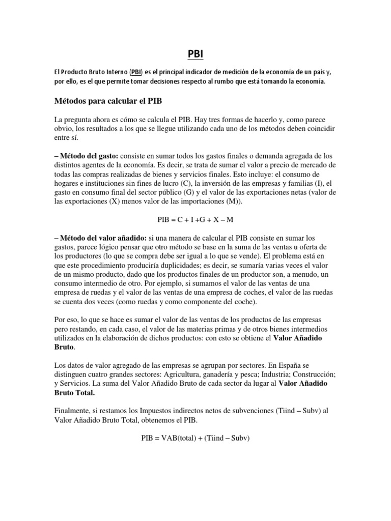 El Producto Bruto Interno (PBI) es el principal indicador de medición de la economía de un país y,