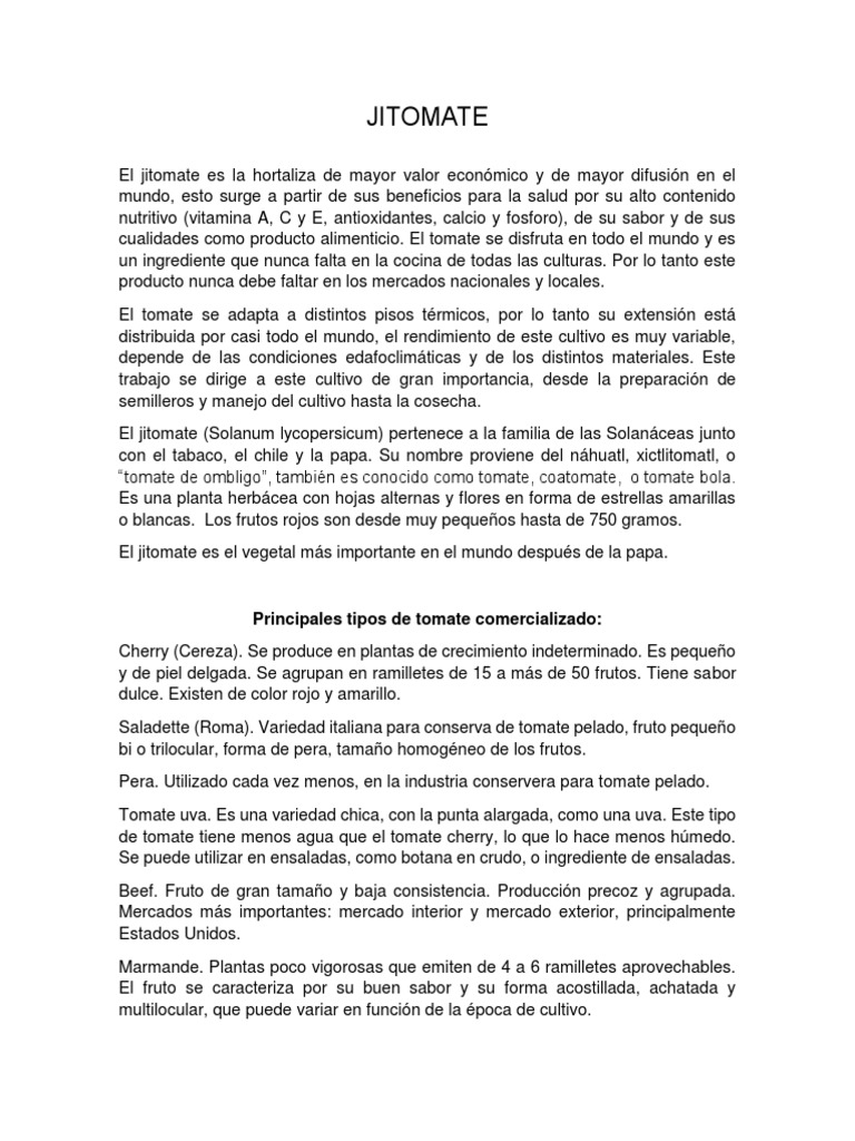 cualidades como producto alimenticio. El tomate se disfruta en todo el mundo y es