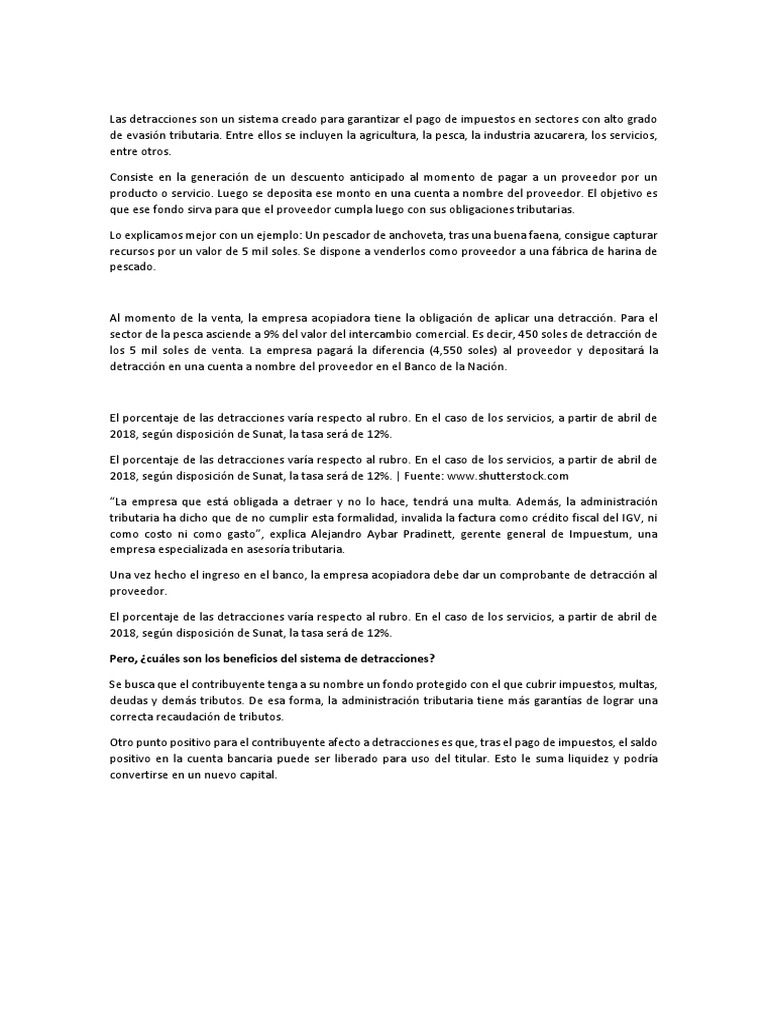 Las detracciones son un sistema creado para garantizar el pago de impuestos en sectores con alto grado