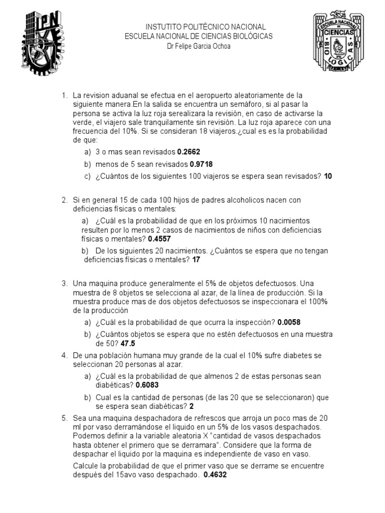 4. De una población humana muy grande de la cual el 10% sufre diabetes se