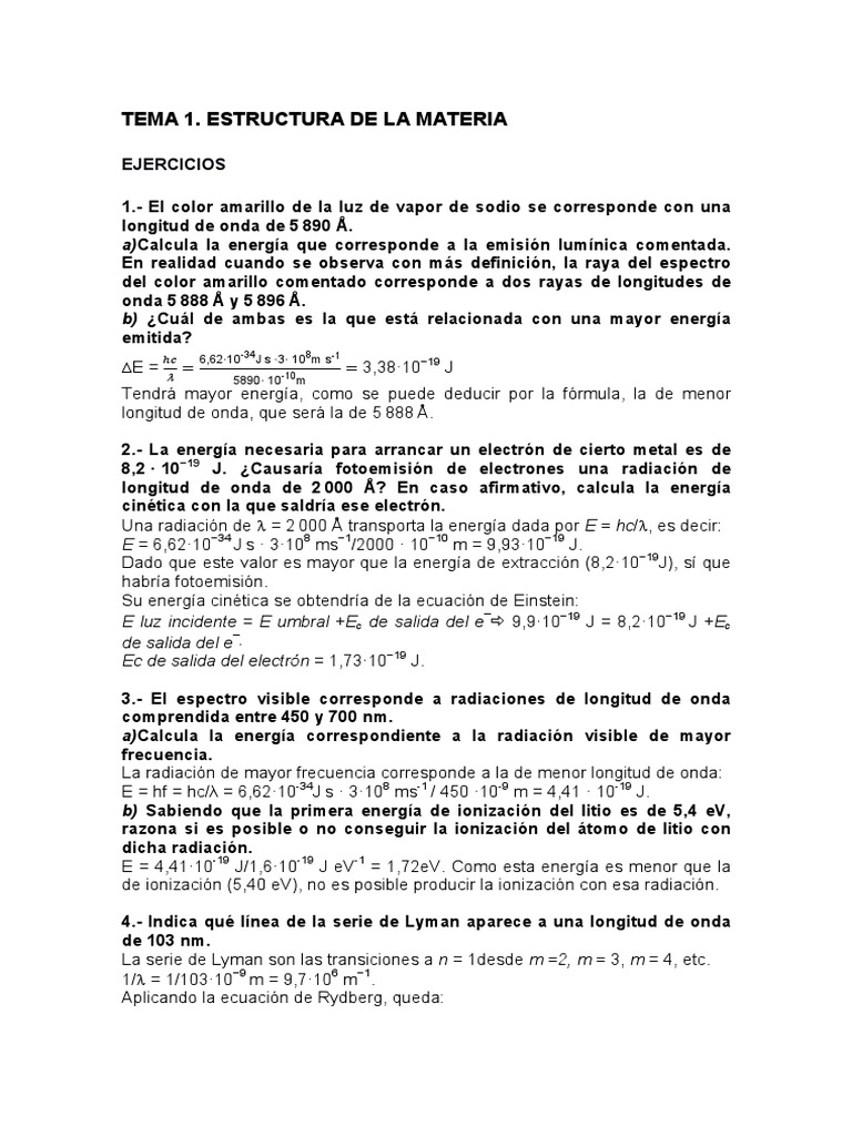 E ionización = 418 103 J mol-1· 1/6,022 · 1023 átomo · mol-1= 6,94 · 10-19 J /