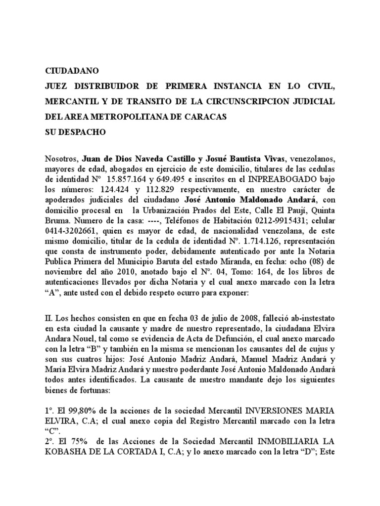 apoderados judiciales del ciudadano José Antonio Maldonado Andará, con