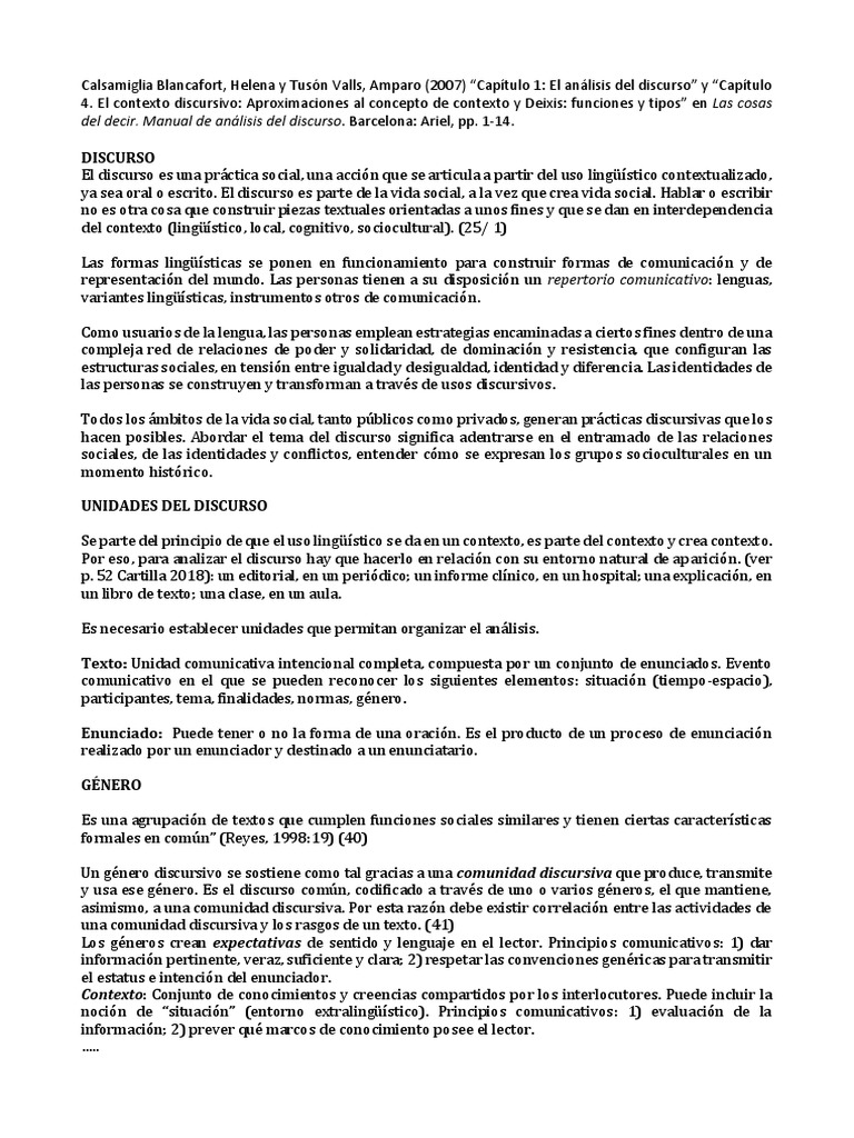 Calsamiglia Blancafort, Helena y Tusón Valls, Amparo (2007) “Capítulo 1: El análisis del discurso” y “Capítulo