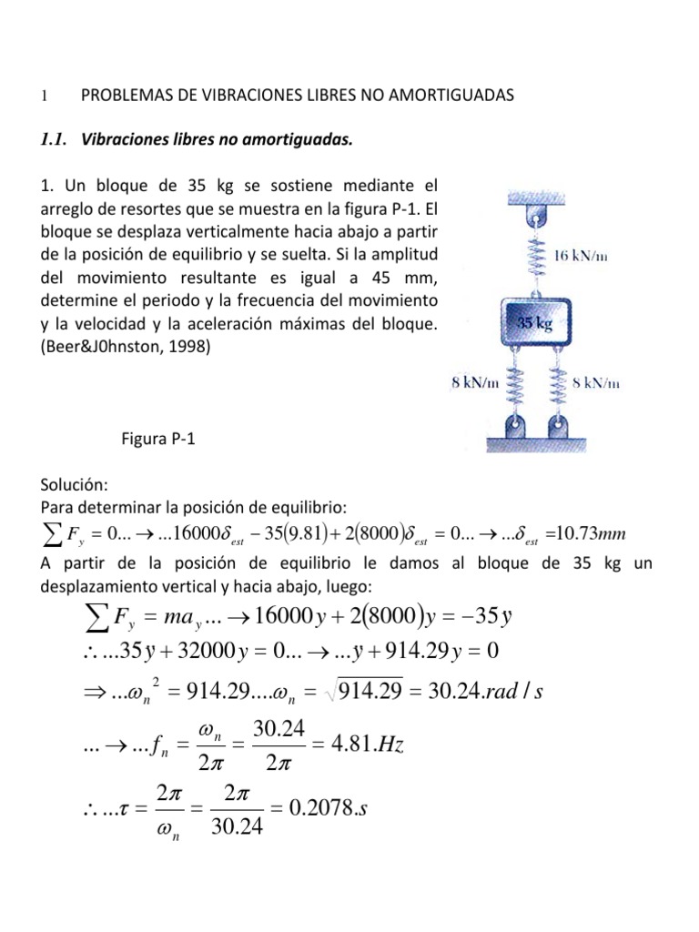 1 PROBLEMAS DE VIBRACIONES LIBRES NO AMORTIGUADAS