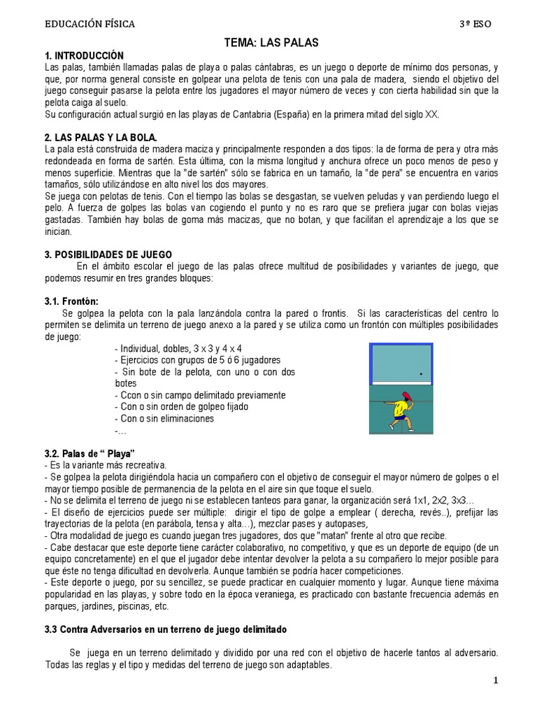 En el ámbito escolar el juego de las palas ofrece multitud de posibilidades y variantes de juego, que