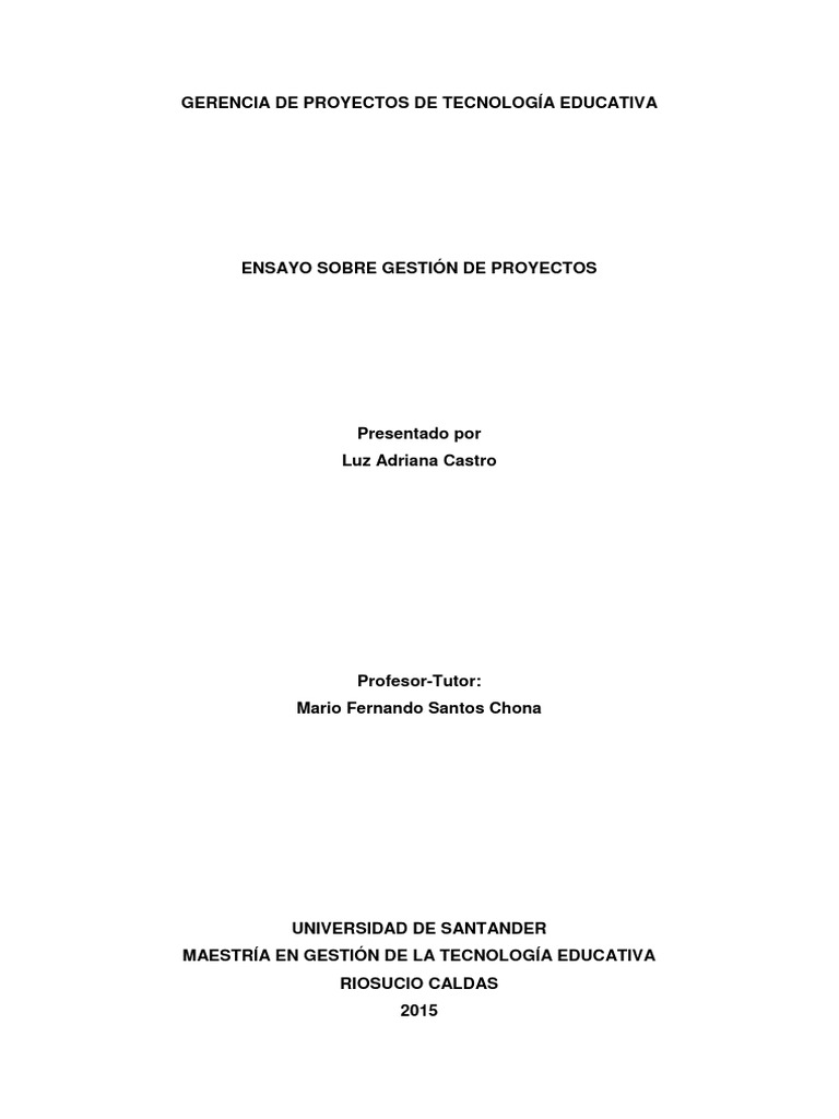 ENSAYO SOBRE GESTIÓN DE PROYECTOS