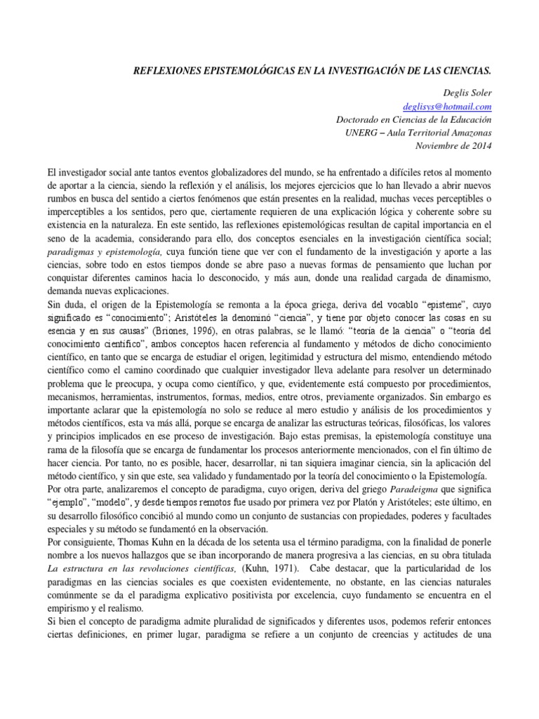 y principios implicados en ese proceso de investigación. Bajo estas premisas, la epistemología constituye una