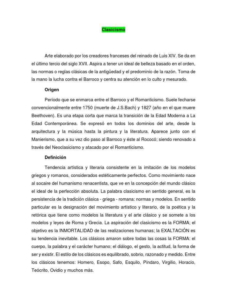 el ideal de la perfección absoluta. La palabra clasicismo en sentido general, es la