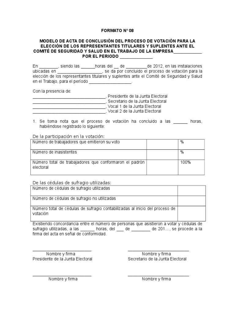 MODELO DE ACTA DE CONCLUSIÓN DEL PROCESO DE VOTACIÓN PARA LA