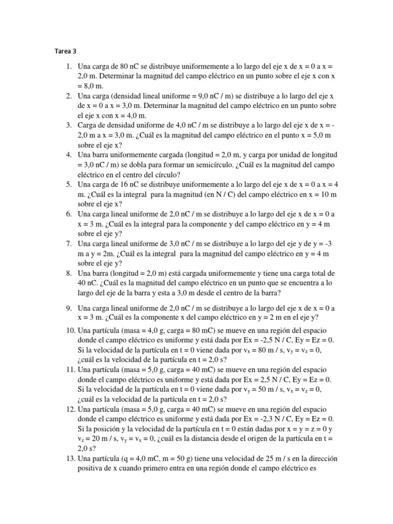 1. Una carga de 80 nC se distribuye uniformemente a lo largo del eje x de x = 0 a x =