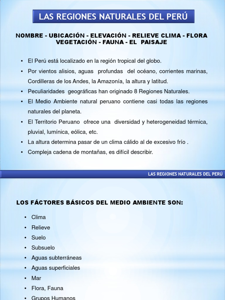 • El Medio Ambiente natural peruano contiene casi todas las regiones