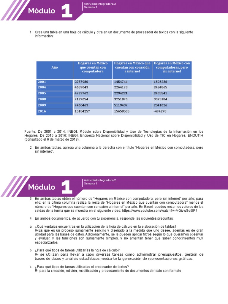 2. En ambas tablas, agrega una columna a la derecha con el título “Hogares en México con computadora, pero