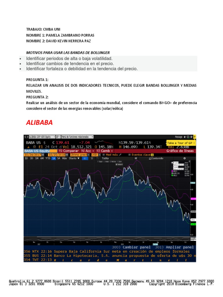 RELAIZAR UN ANALISIS DE DOS INDICADORES TECNICOS, PUEDE ELEGIR BANDAS BOLLINGER Y MEDIAS