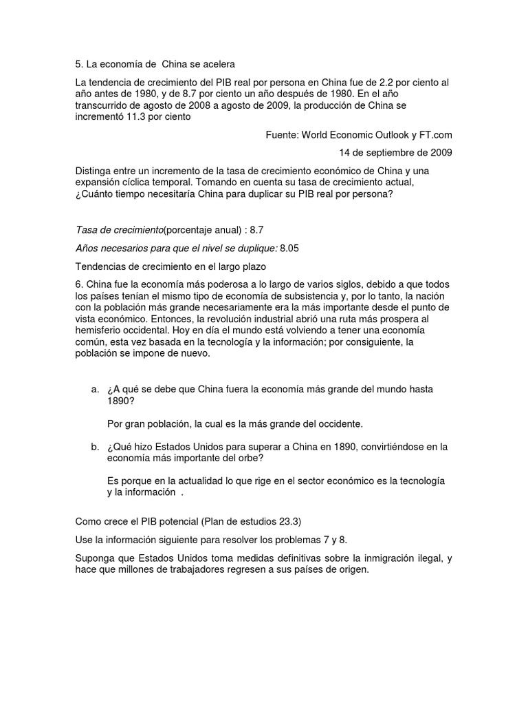 Distinga entre un incremento de la tasa de crecimiento económico de China y una
