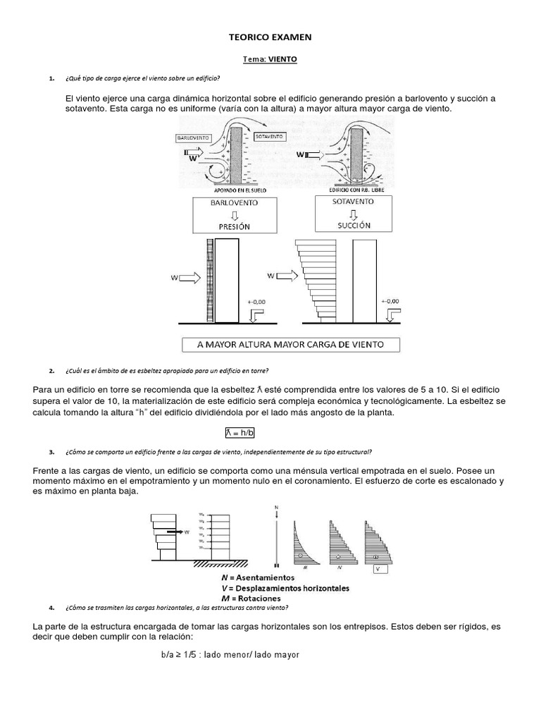 sotavento. Esta carga no es uniforme (varía con la altura) a mayor altura mayor carga de viento.