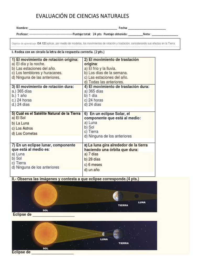 Objetivo de aprendizaje: OA 12Explicar, por medio de modelos, los movimientos de rotación y traslación, considerando sus efectos en la Tierra