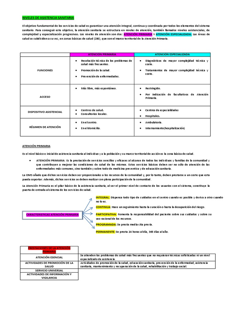 sanitario. Para conseguir este objetivo, la atención sanitaria se estructura en niveles de atención, también llamados niveles asistenciales, de