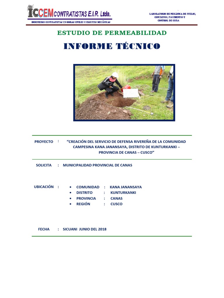 El presente estudio de permeabilidad se ha realizado, con fines de encontrar el