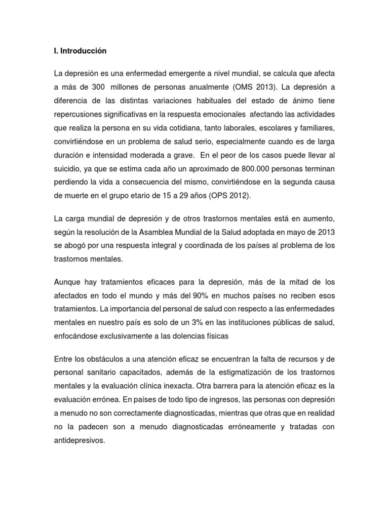 En la actualidad se implementa el manejo de personas con depresión desde una