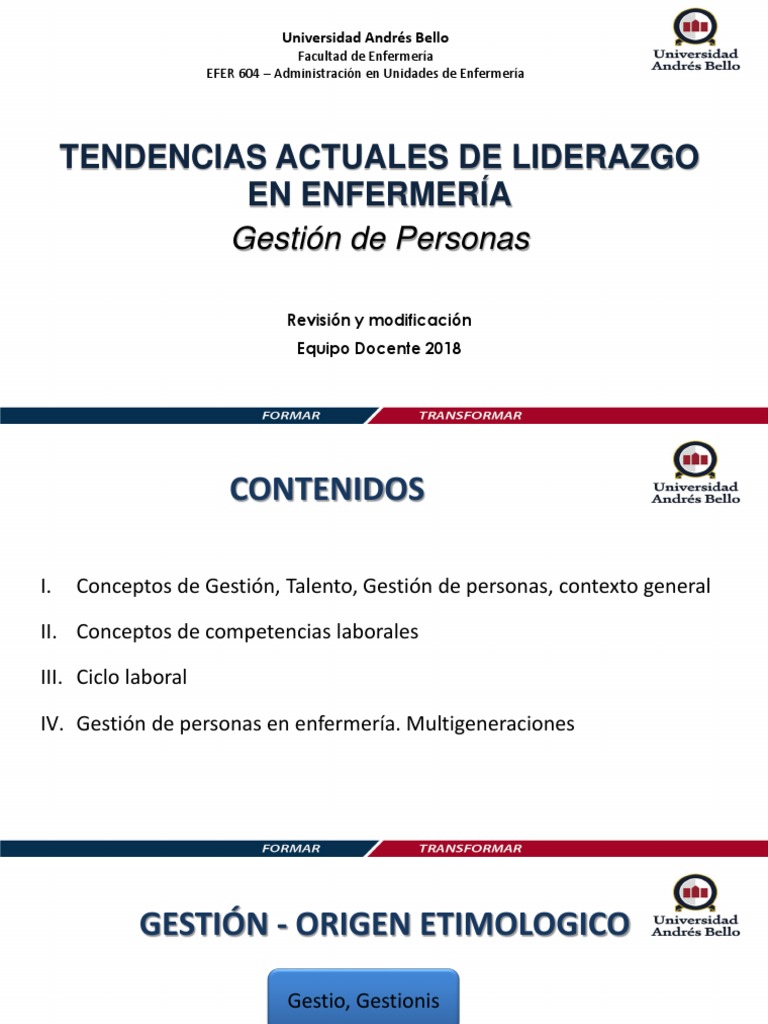 I. Conceptos de Gestión, Talento, Gestión de personas, contexto general