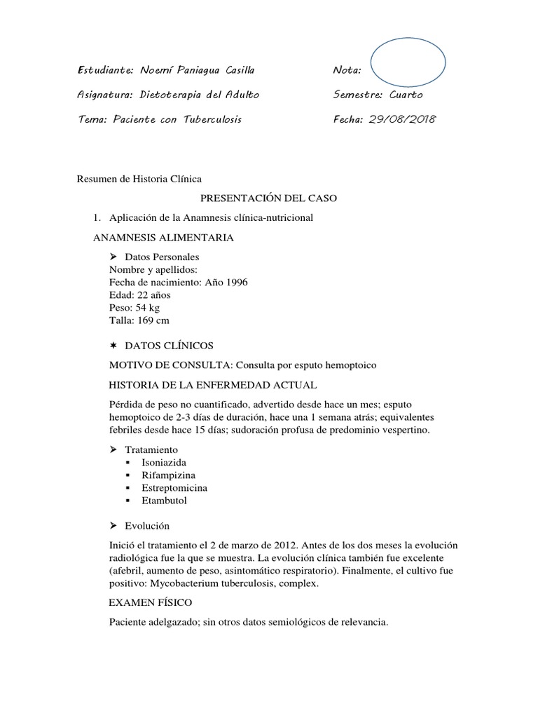 Tema: Paciente con Tuberculosis Fecha: 29/08/2018