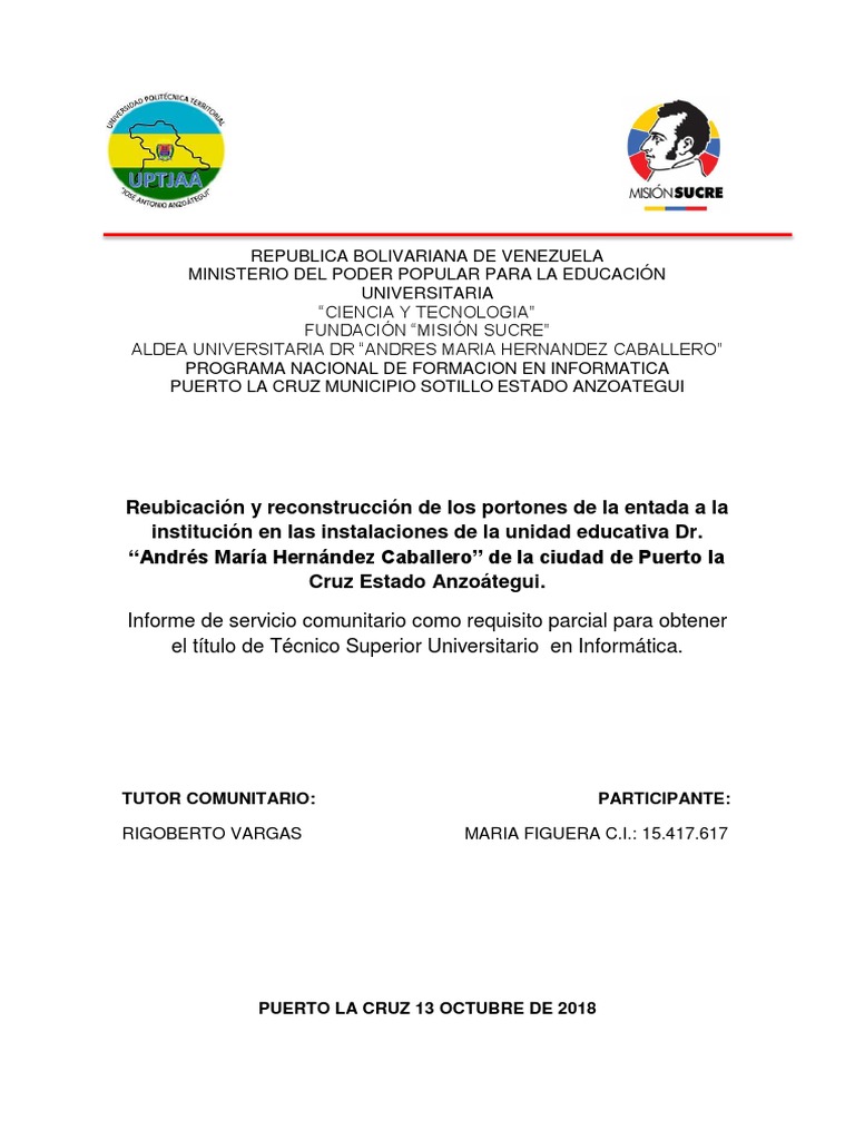 Hernández Caballero” de la Ciudad de Puerto la Cruz Municipio Sotillo del Estado Anzoátegui