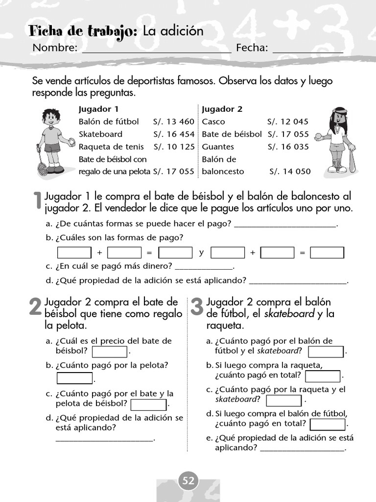 Ficha de trabajo: La adición