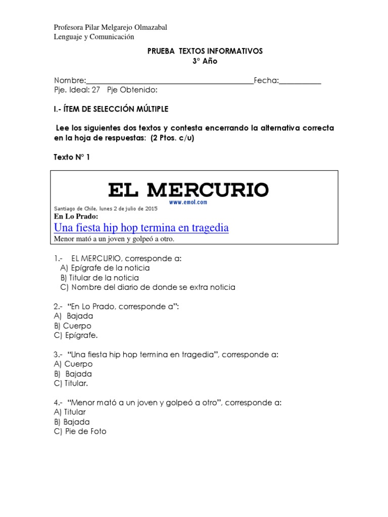 1.- Lee los siguientes dos textos y contesta encerrando la alternativa