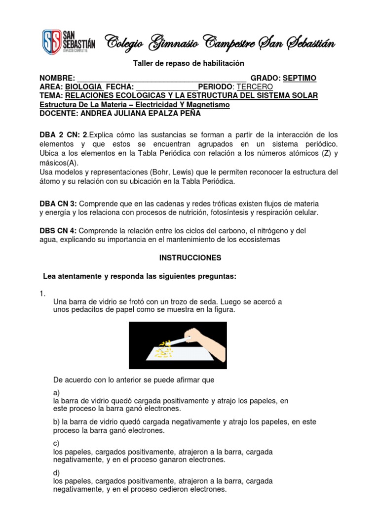 6. Durante la clase de ciencias, el docente indicó a sus estudiantes que observaran el