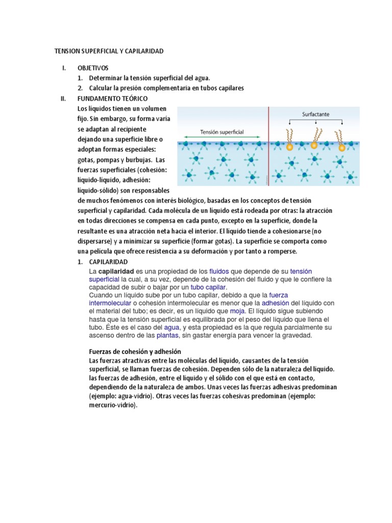 TENSION SUPERFICIAL Y CAPILARIDAD