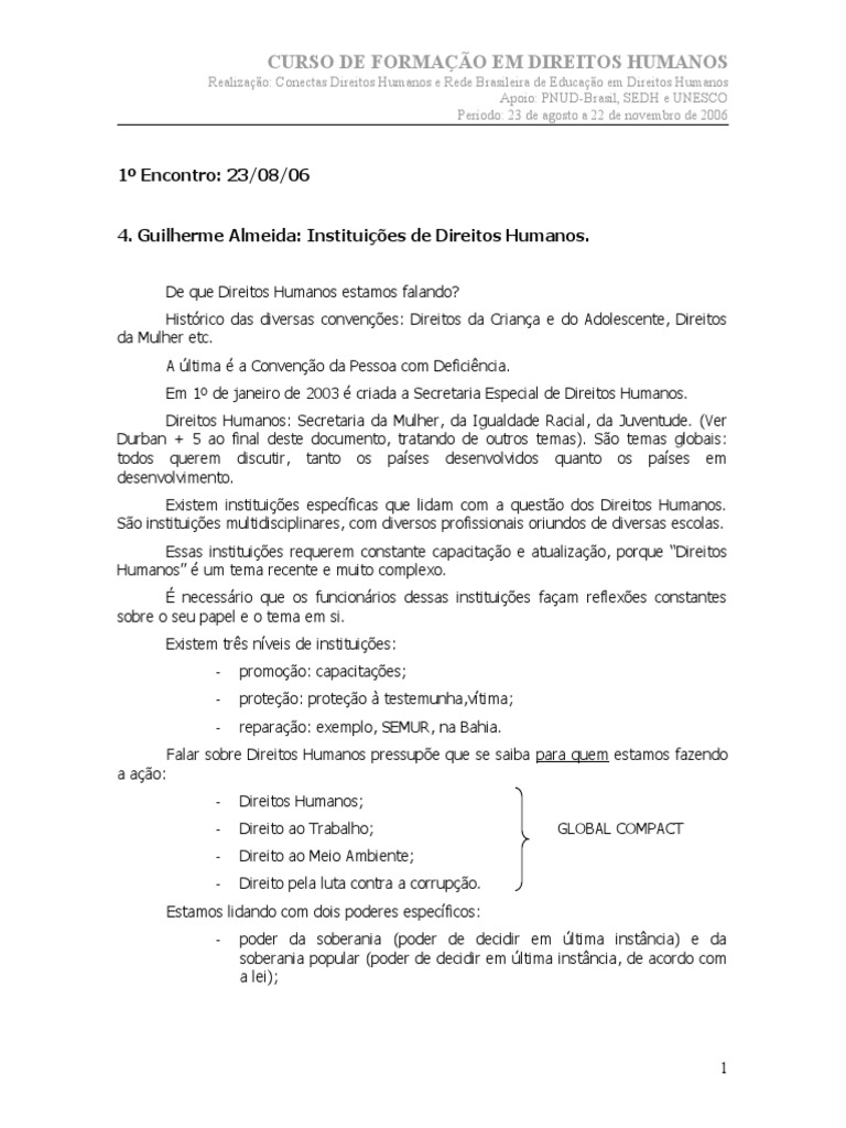 CURSO DE FORMAÇÃO EM DIREITOS HUMANOS
