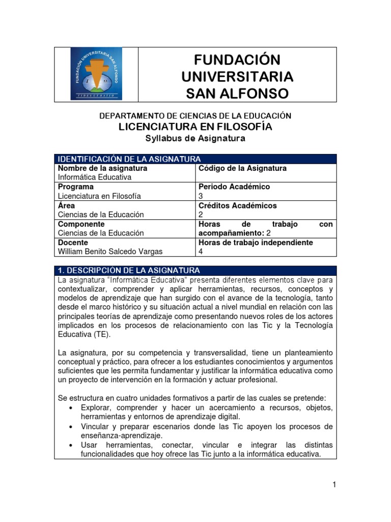 La asignatura “Informática Educativa” presenta diferentes elementos clave para