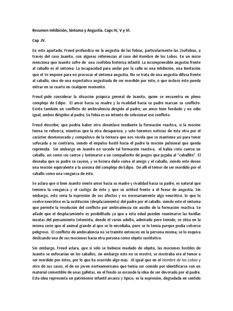 Resumen Inhibición, Síntoma y Angustia. Caps IV, V y VI.