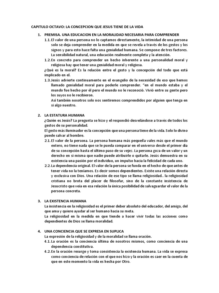 CAPITULO OCTAVO: LA CONCEPCION QUE JESUS TIENE DE LA VIDA