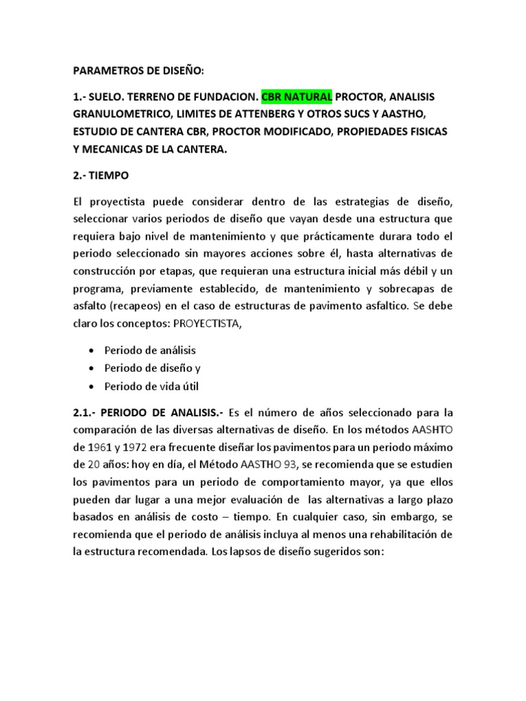 de 20 años: hoy en día, el Método AASTHO 93, se recomienda que se estudien